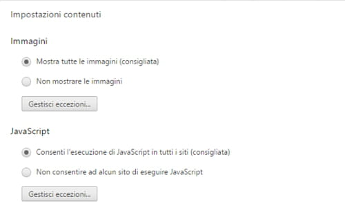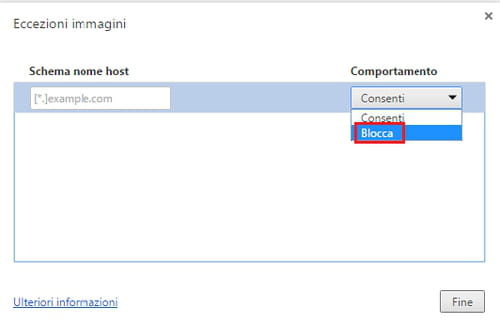Google Chrome la procedura di blocco siti internet è facilitata, poiché basterà inserire l’URL del sito che si desidera bloccare, tra le impostazioni del contenuto del browser.