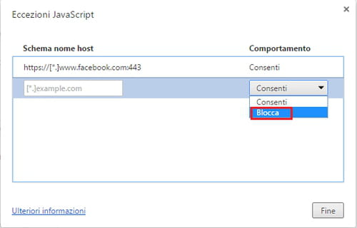 JavaScript, e inserire il sito da bloccare sotto la dicitura