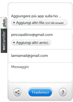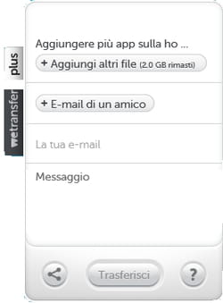 La tua e-mail inserire il proprio indirizzo mail, per consentire ai destinatari di vedere il mittente del trasferimento. È possibile inserire anche un breve messaggio nel campo