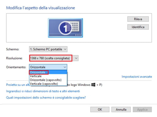 Ruotare schermo Windows 10 dal pannello di controllo