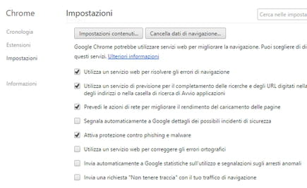 Se non si vedono queste impostazione, è possibile che si stia operando su una vecchia versione di Chrome. Un'altra opzione potrebbe essere che non si hanno i diritti per modificare le impostazioni di Chrome perché si sta utilizzando una un'organizzazione specifica della versione del browser.