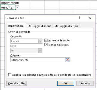 Aggiungere voci nell'elenco a discesa Excel