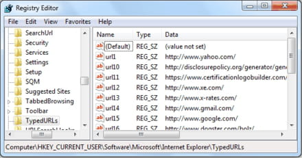 HKEY_CURRENT_USER\Software\Microsoft\Internet Explorer\TypedURLs. Qui sarà possibile cancellare il valore che si reputa non conveniente, escluso quello di default: