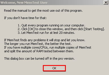 memtest.exe. Chiudere tutti i programmi che girano sotto Windows per liberare la memoria utilizzata. Verrà visualizzata una finestra di benvenuto. Premere