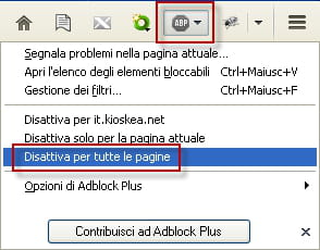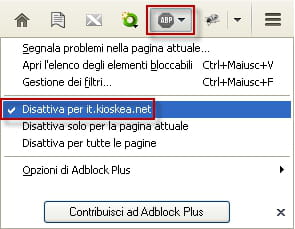 Disattivare temporaneamente AdBlock Plus