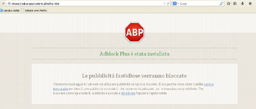 browser aprirà una pagina della confermata installazione di AdBlockPlus: