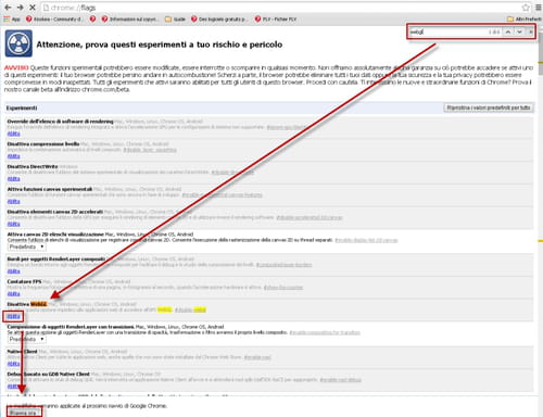 Disattiva WebGL Se attivi questa opzione impedisci alle applicazioni web di accedere all'API Web (per velocizzare il tutto cliccare