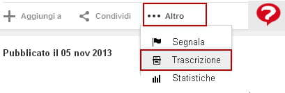 Poi dal menu visualizzato, selezionare Trascrizione: