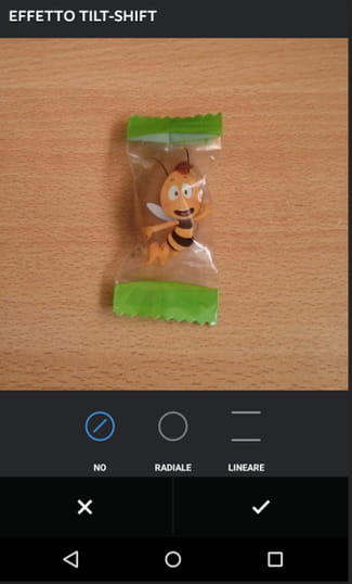 Effetto Tilt-shift (indicato con un'icona a forma di goccia) sarà possibile aggiungere un'effetto sfocatura alla propria foto:
