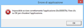 Impossibile avviare correttamente l'applicazione (0xc000007b). Fare clic su OK per chiudere l'applicazione. Questo messaggio viene visualizzato quando esiste una incompatibilità tra le biblioteche di