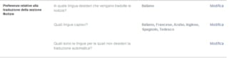 Disabilitazione traduzione testi automatica su Facebook